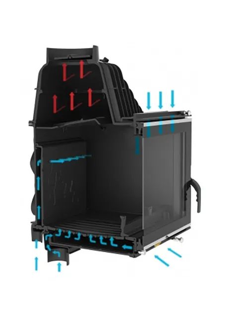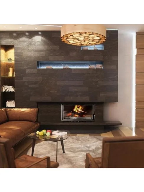 Der Einbau-Holzkamineinsatz W15 ECO vereint Leistungsstärke und Kompaktheit und eignet sich somit perfekt für kleine und mittelgroße Räume. Mit einer Leistung von 9,4 kW heizt er bis zu 94 m² und sorgt dank seines Nachverbrennungssystems und seines Vermiculit-Deflektors für einen kontrollierten Verbrauch.