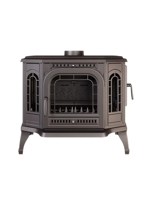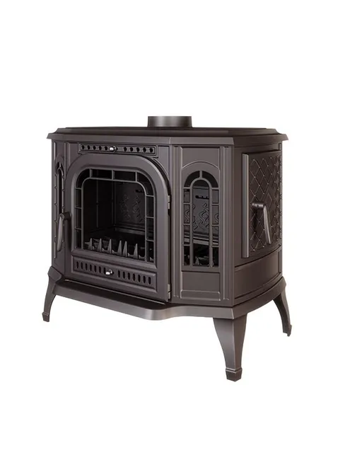 Freistehender Gusseisenofen mit 10,5 kW, mit doppelter Öffnung (vorne und seitlich). Beheizt bis zu 105 m² mit einem Wirkungsgrad von 73,5 %. Robustes Design und hochwertige europäische Fertigung.